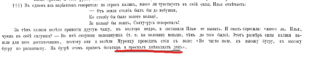 В одной из версий Сказания о Илье Муромце раскрывается побочное действие выпитых ведер пива(меда) на новоиспеченого богатыря: Внезапный хмельной сон на две недели: