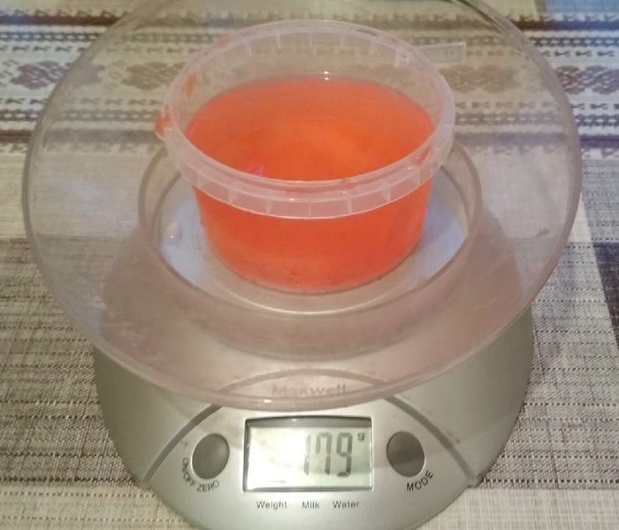 Идем дальше, начинаем все взвешивать по отдельности и что мы видим, вес баночки и жидкости 179 гр.