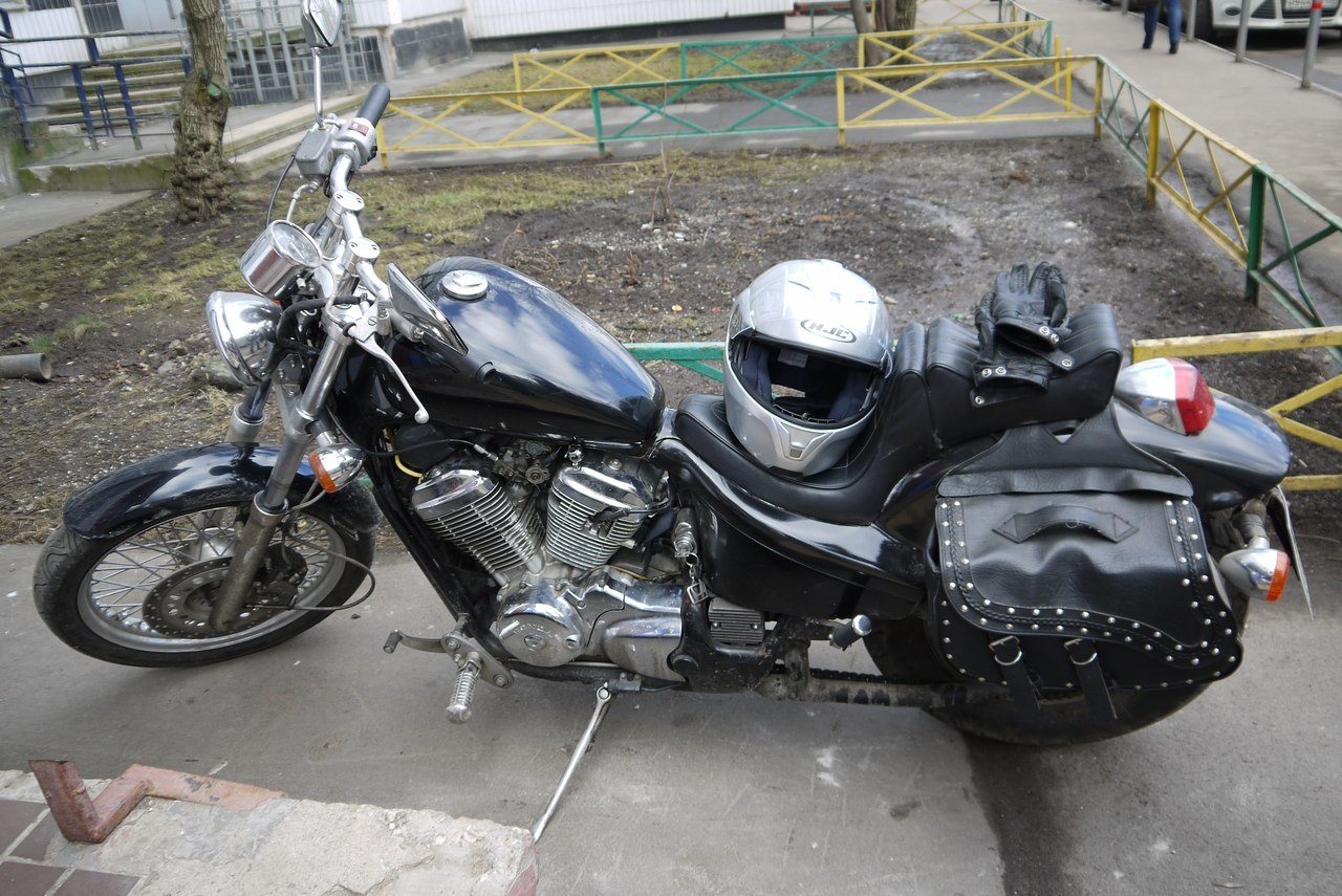 Причем покупка покупка проходила в 2 этапа - собсно осмотр с алкоголизмом, да так, что я уснул в метро и катался по синей ветке(символично, не находите?)) и сама покупка через неделю. Достался мне байк не в сильно ушатанном состоянии, причина продажи предыдущим владельцем - "мы хотели от жен на рыбалки всякие ездить и не срослось". До июля нынешнего года ездил без прав, и только попав на несколько штрафов по 5к решил получить права. Вопреки моим ожиданиям, вышло все в районе 20к+15к штрафов, так как без погашенных задолженностей В/У мне бы не выдали. Немаловажную роль в столь малой сумме сыграла моя прописка в г. Обнинске и справки от психиатра и нарколога я получил за 175 р/штука. За время езды без прав я накатал около 30 тысяч, и остался весьма доволен этим аппаратом. Съездили в отпуск с женой в Калужскую область