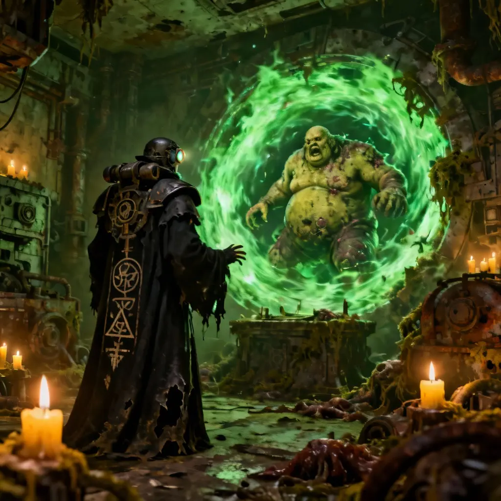 Это было начало. За ним показался увесистый прыщавый конец. И пухлая, мясистая середина. И всё остальное. И прожупь. Магистр не просто стал культистом Нургла. Он стал его шедевром. Ходячим, топочущим, заикающимся памятником божественной невнятности и кишечной радости.