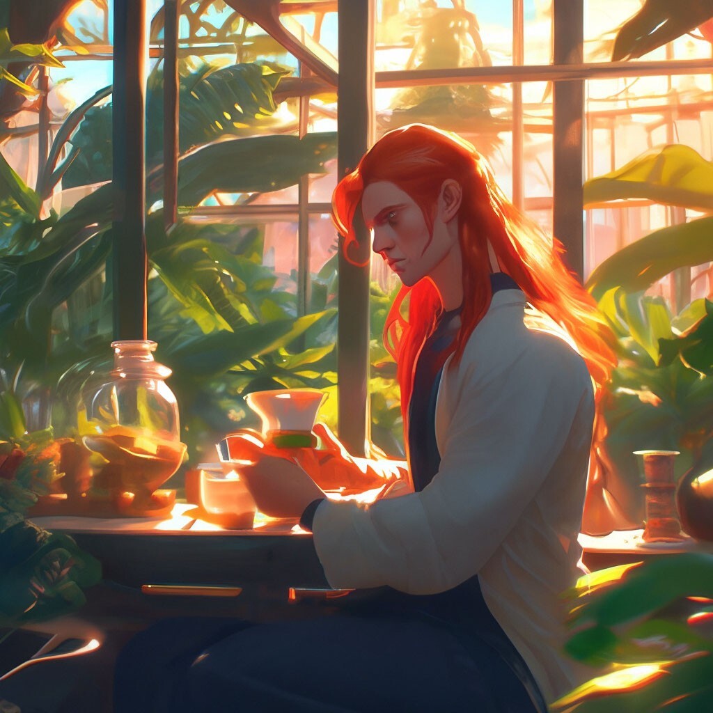 Инвар с книгой сидел в плетеном кресле под широкими листьями монстеры и пил чай, периодически ставя чашку на кофейный стеклянный столик с витражными боками.
