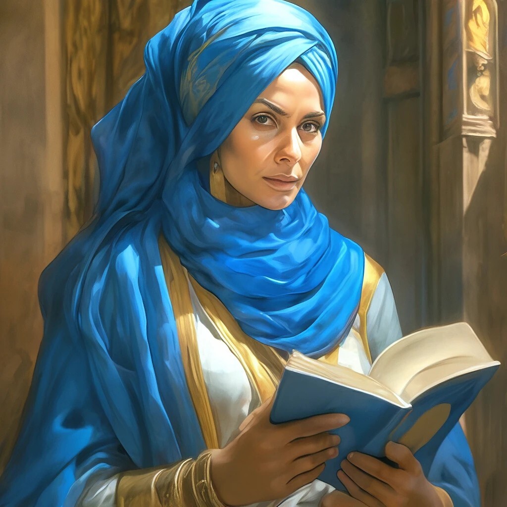 Правительница Юнчи. Невысокая, но с благородным станом и осанкой. Волосы спрятаны под тюрбан из синего шелка. Она открыла лицо чтобы поприветствовать меня, и тут же закрыла, потеряв ко мне интерес.