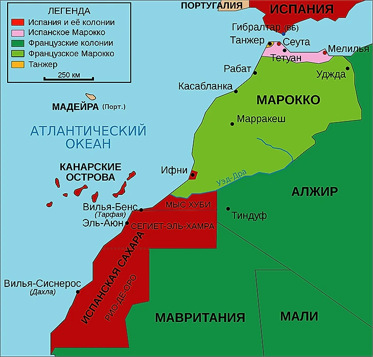 В 1884-1885 годах состоялась Берлинская конференция, разделившая всю Африку на сферы влияния европейских держав. Испании на ней досталась роль голодной собаки, которой кинули кость, пока более сильные игроки брали самые жирные куски добычи. Как бы унизительно для Испании не звучало данное сравнение, по существу всё было именно так - пока Париж с Лондоном брали во владение огромные земли Африки, Мадриду досталась лишь прибрежная территория чуть южнее Марокко, также населённая берберскими племенами. Ныне это частично признанная Западная Сахара, а тогда была лишь кучка разрозненных кочевых кланов, которые Испания методично покоряла с середины 1880-х годов.