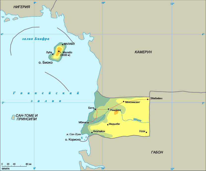 С точки зрения государственных границ Экваториальная Гвинея - очень странное место, расположенное частично на острове Биоко (ранее - остров Фернандо По), а частично (и по большей части) на не очень большой прямоугольной континентальной территории.