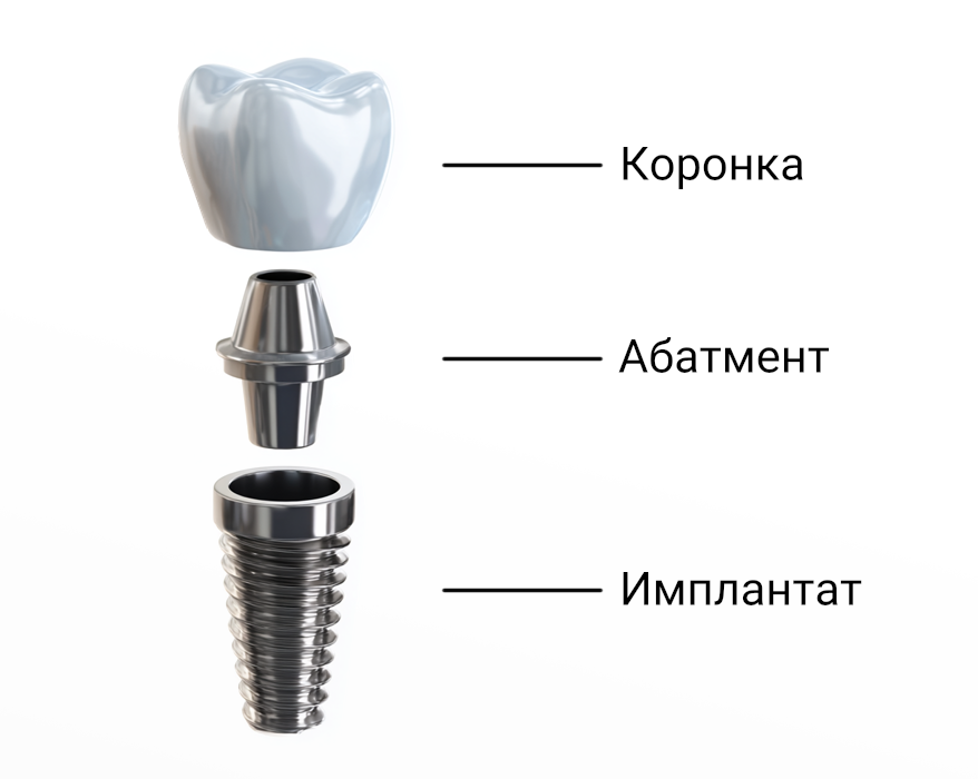 Если совсем по-простому: имплант — это титановый корень, который ставится в кость вместо утраченного зуба.