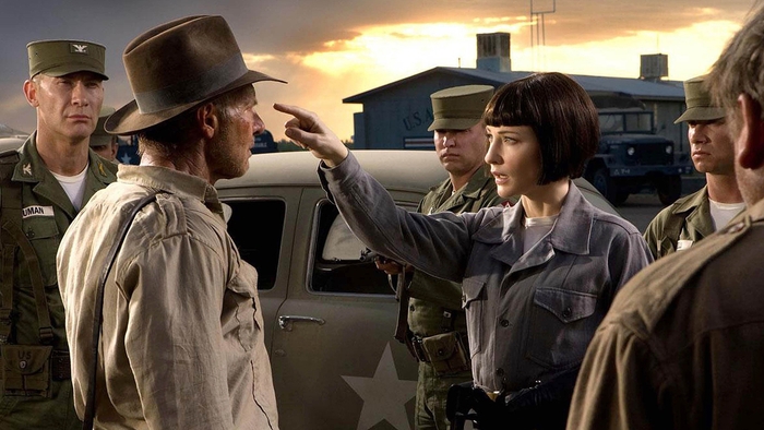 Отдельно стоит обратить внимание на Ирину Спалько, при первом просмотре в далёком 2008 году я испытывал кринж, даже не зная этого слова, что в целом верно, однако подросток во мне видел только нелепое приключение, пародию на одну из самых любимых вселенных, но с серьёзным лицом, а на игру актрисы совершенно не обращал внимание. Тема антисоветизма тоже задавала тон, при котором объективно судить становилось невозможным, но спустя годы будто впервые смотрю это кино. Да, глупые моменты никуда не делись, в чём-то даже тупее полёта Индианы в холодильнике, но будучи хорошо знакомым с антисоветчиной в кино заметил что Ирина выделяется в лучшую сторону. Ум, хитрость, ловкось и смелость - это не тупой алкаш кубинец или нимфоманка в мехах, это уже похоже на человека. А если ко всему этому добавить непосредственно актёрскую игру и саму форму гибели персонажа - начинаешь понимать что кино с именем Индиана в названии, тянет любимица Сталина - Ирина!