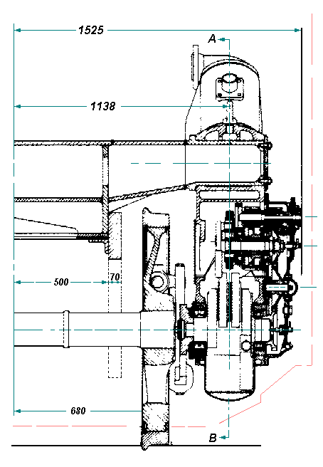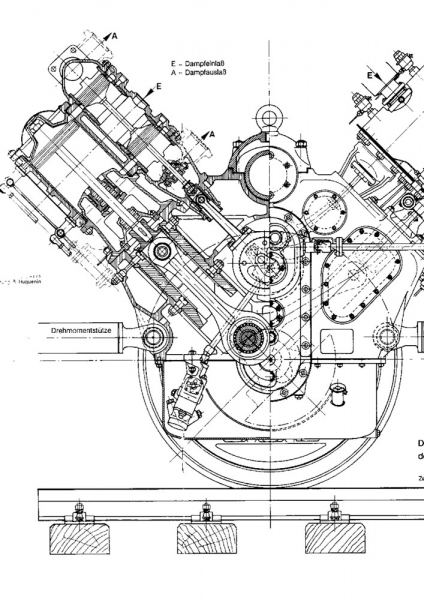 На 1 и 3 осях V-образные паровые машины располагались слева, на 2 и 4 - справа.
