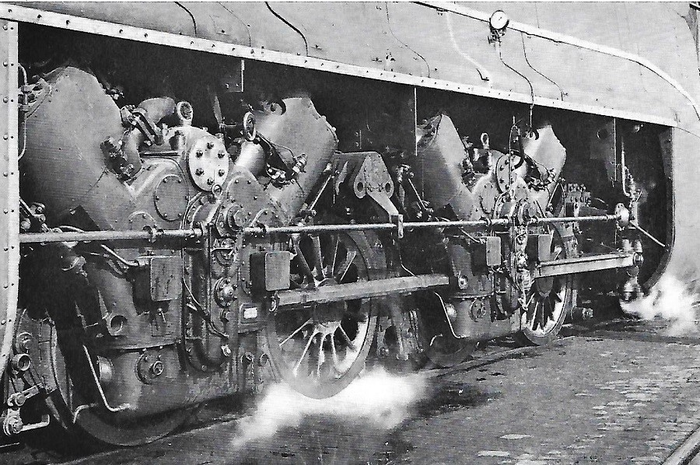 Паровые двигатели принадлежали к подрессоренной части паровоза (что немаловажно) и соединялись с ведущими осями шарнирно-сочлененными муфтами.