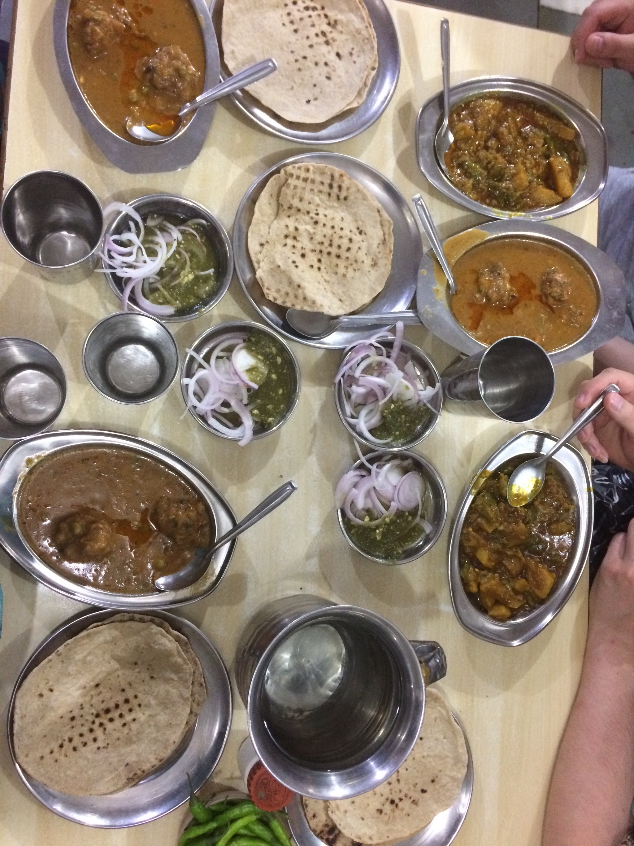 Настояли на ужине, отказаться было нереально. Даже бхинди мои любимые где-то нашли, хотя изначально не было. На фото ещё не попал ласси, сыворотка из-под простокваши. Для меня положили мало специй, поэтому было вкусно. В школу меня вернули в девять. В целости и сохранности.