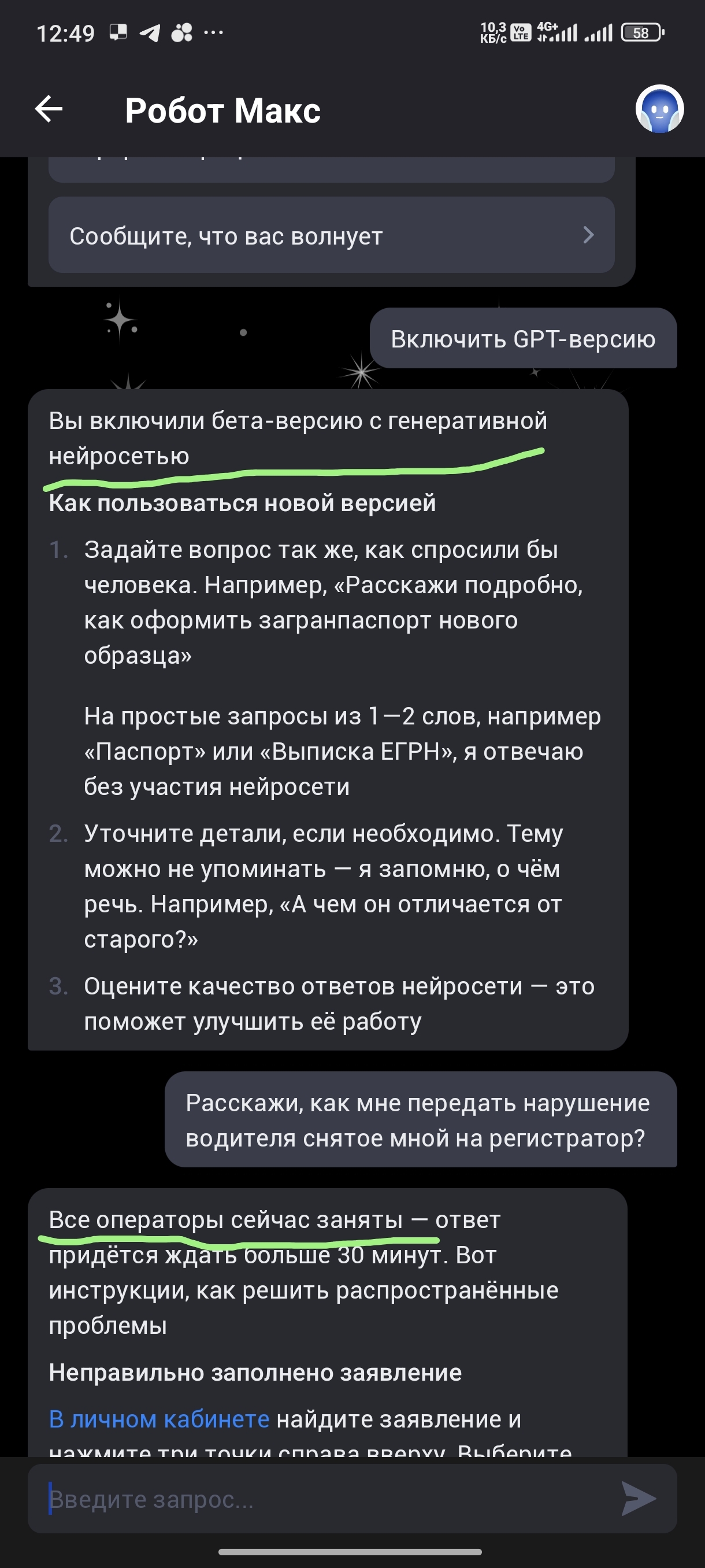 5 Metlik Индусы закончились 4 месяца назад Попробовал на Госуслугах GPT робота Макса, он дал ответ все операторы заняты 🤣 [моё] Госуслуги ChatGPT Нейронные сети IT Длиннопост Ещё 0