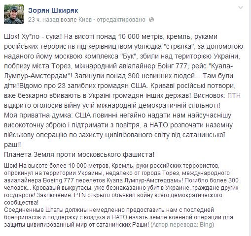 Абсолютно топорная провокация. По аналогии с Корейским боингом 1983 тут даже не шифровались особо. Но, это все может стать новым Франц Ферденандом. 1914 - 2014 история очень любит повторяться. С чудовищной частотой.