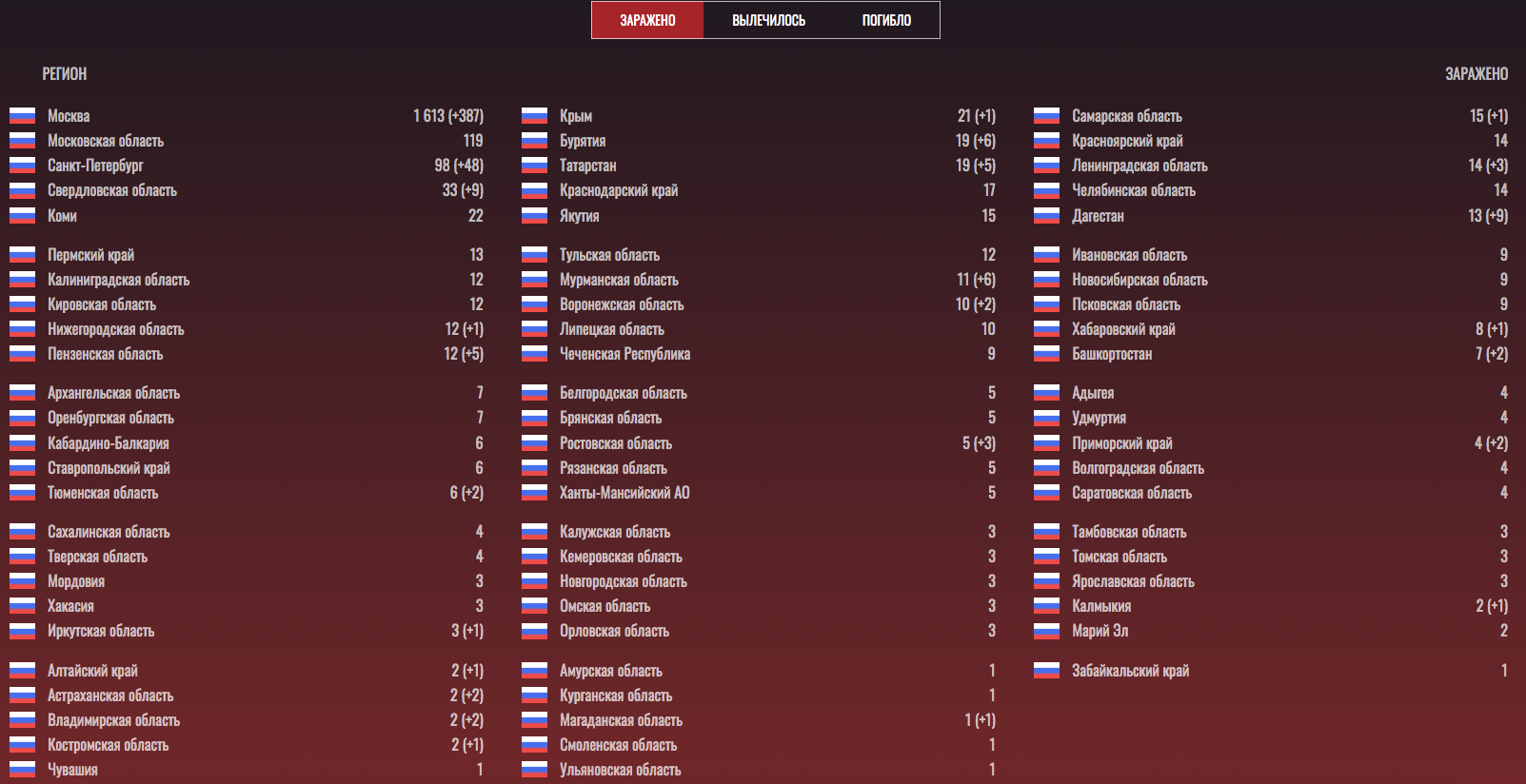 Информация о заразившихся коронавирусом на 31 марта 20:03