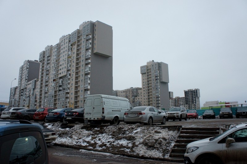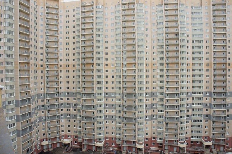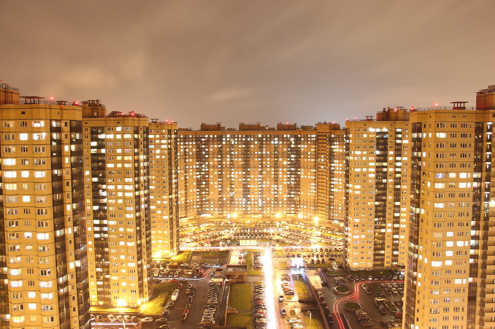 "В кризис,когда у олигарха Дерипаски появились большие проблемы с деньгами он решил срубить денег по-быстрому построив жилой комплекс в Питере с самой высокой плотностью застройки в стране.