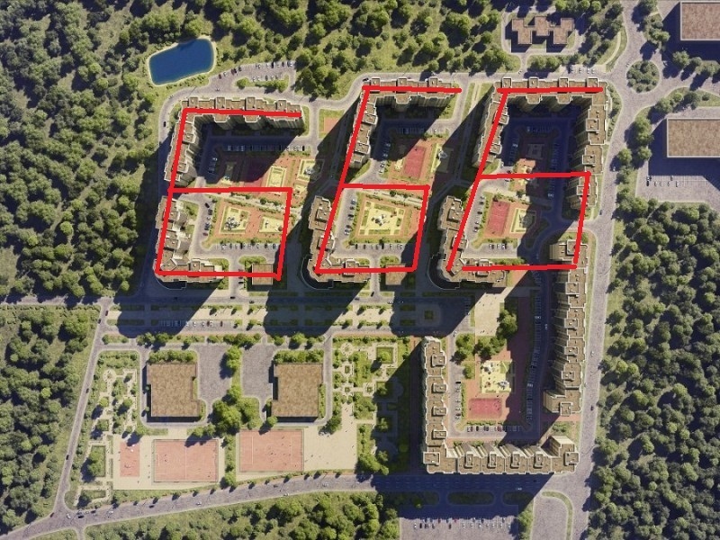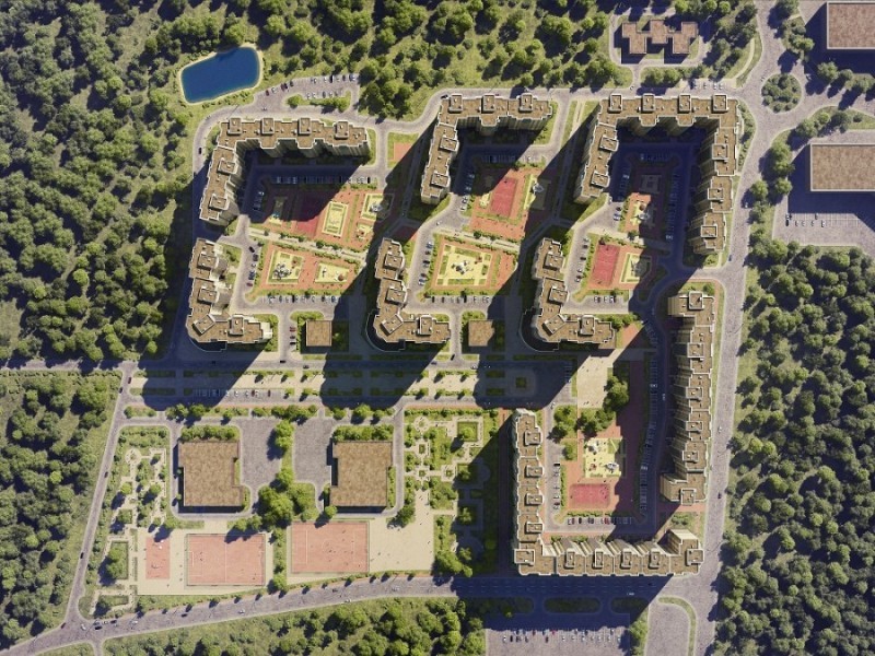 Две школы, зелень вокруг. Многоуровневые гаражи, детские игровые площадки, амбулатория. Объездная автомобильная дорога.