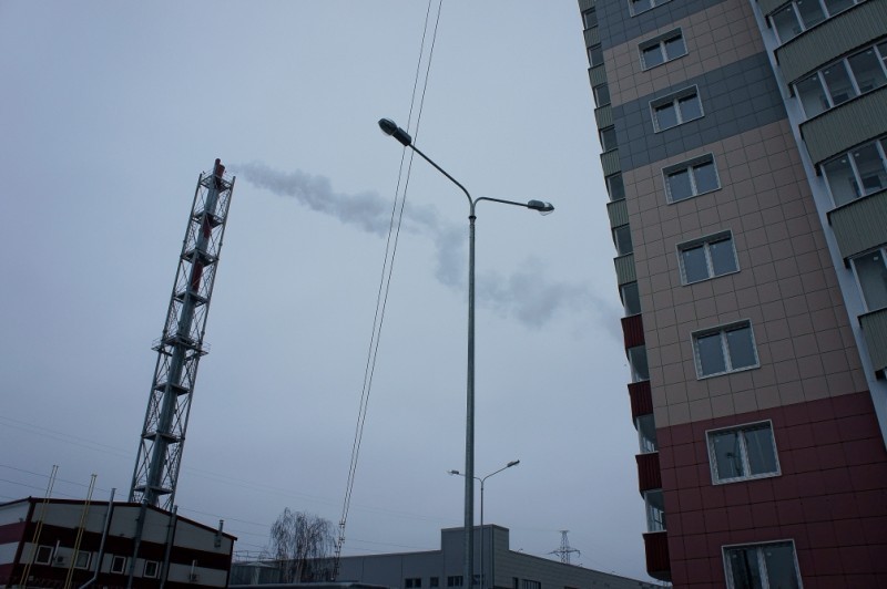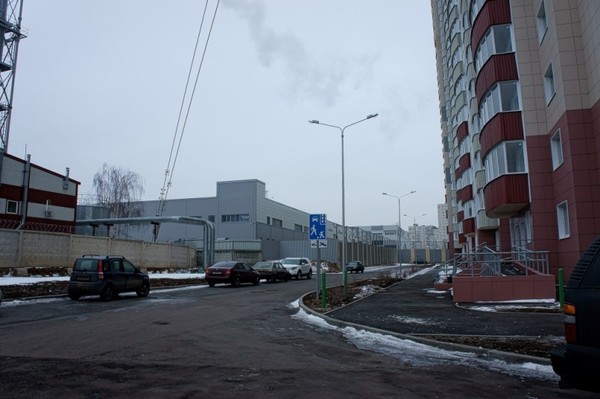 При соответствующем направлении ветра дым из этой трубы идёт прямо в окна жилого корпуса № 12, вплотную к которому поставили забор торгово-логистического комплекса. Это, наверное, чтобы жизнь здесь совсем уж мёдом не казалась.