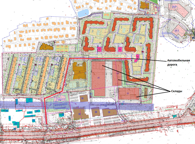 И, конечно, никакой объездной автодороги - зачем она, езжайте дворами. Вот, на фото видно, как дорога упирается прямо в торгово-логистический комплекс. Гениальная планировка!