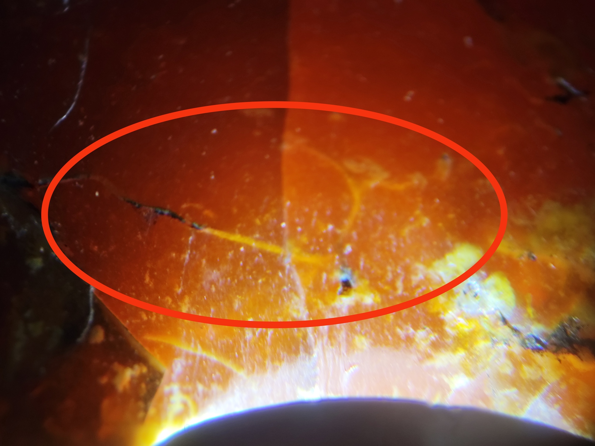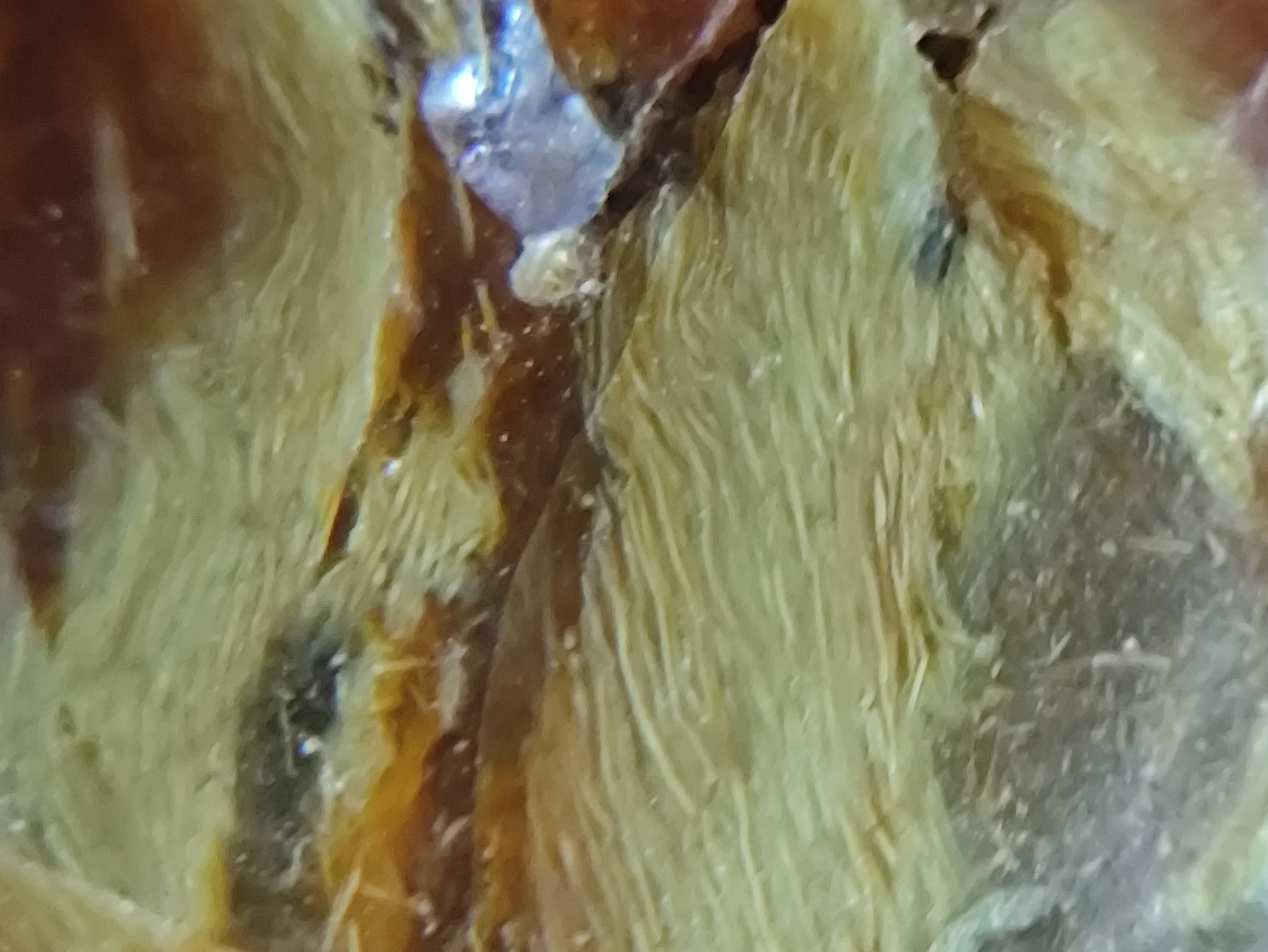 В какой-то момент времени я подумал что вижу волосы в янтаре. Но нет это скорее всего все таки волокна древесины.