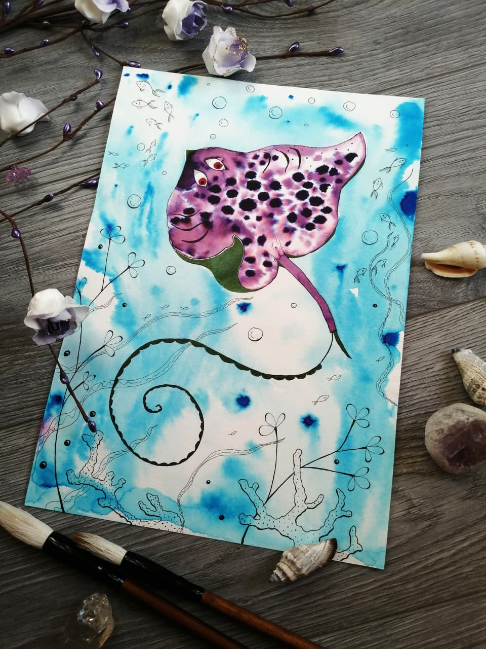 Чернила распадающиеся с блеском, линер, бумага. А4