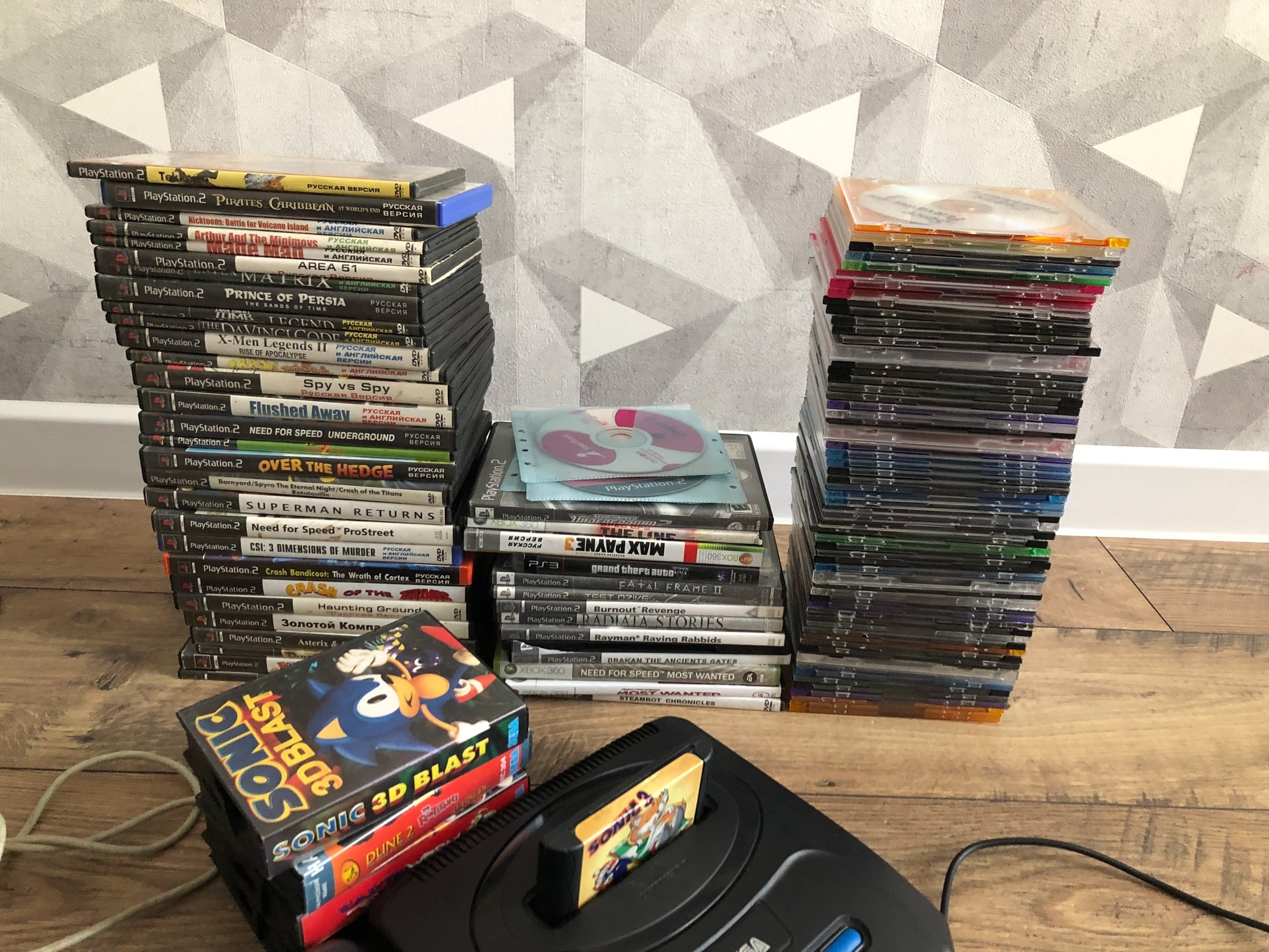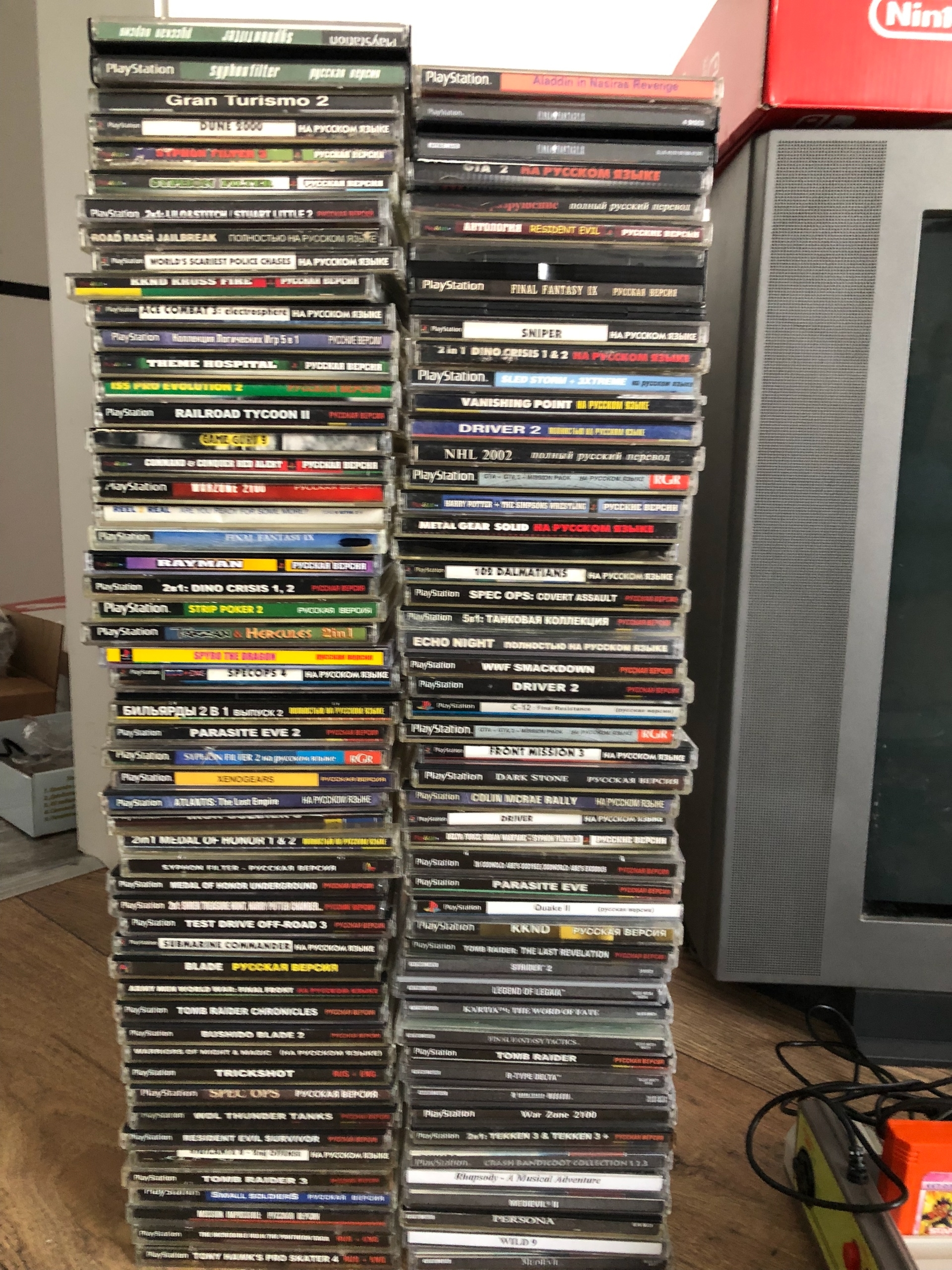 Всем привет. Не так давно начал собирать коллекцию. Слева диски для PS1, справа для PS2, плюс 2 сумки забиты болванками для PS1. Жена сделала кастом для PS2. Иногда посещают мысли все разом продать)))