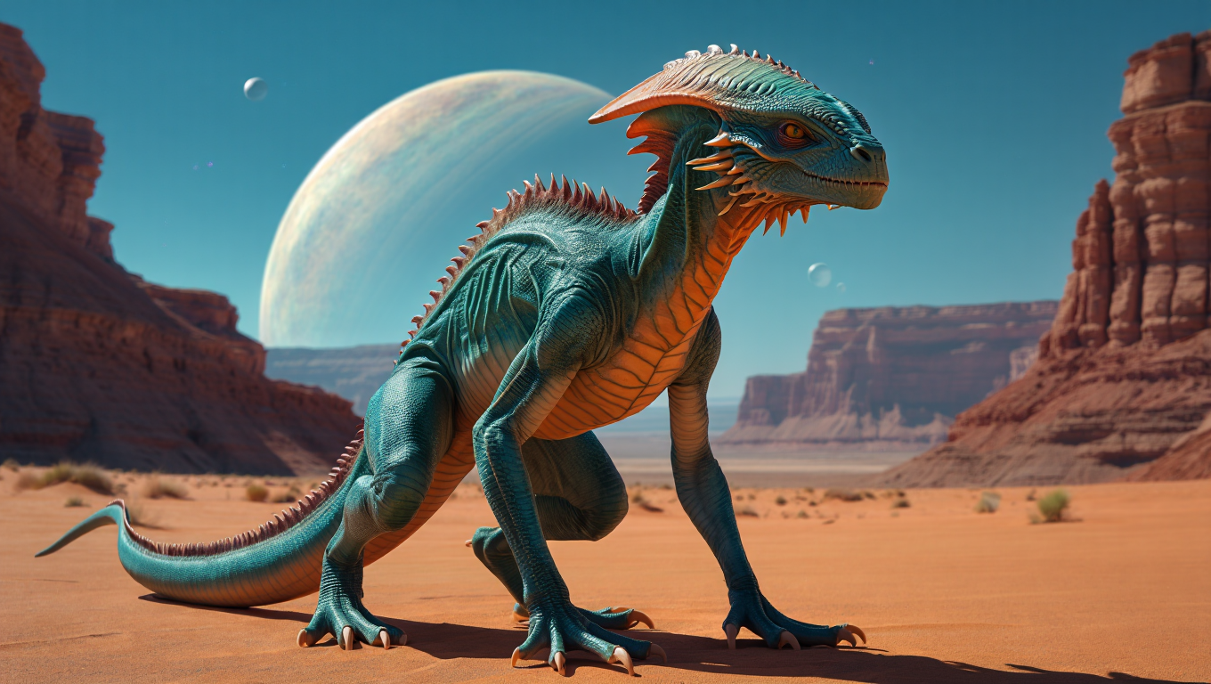 3 EvPix Инопланетное существо 10 месяцев назад Арты нейросетей Нейронные сети Обои на рабочий стол Инопланетяне Существа Ящер Ящерица Планета Пустыня Жара Ещё 0