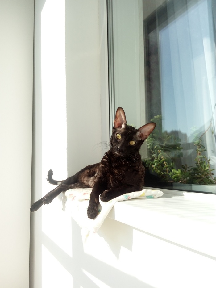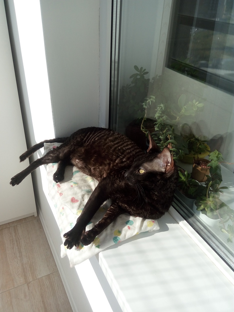 Вот такой у меня шоколадный кудрявый батончик вырос. Люблю - не могу. Отличный, умный, ласковый кисун.