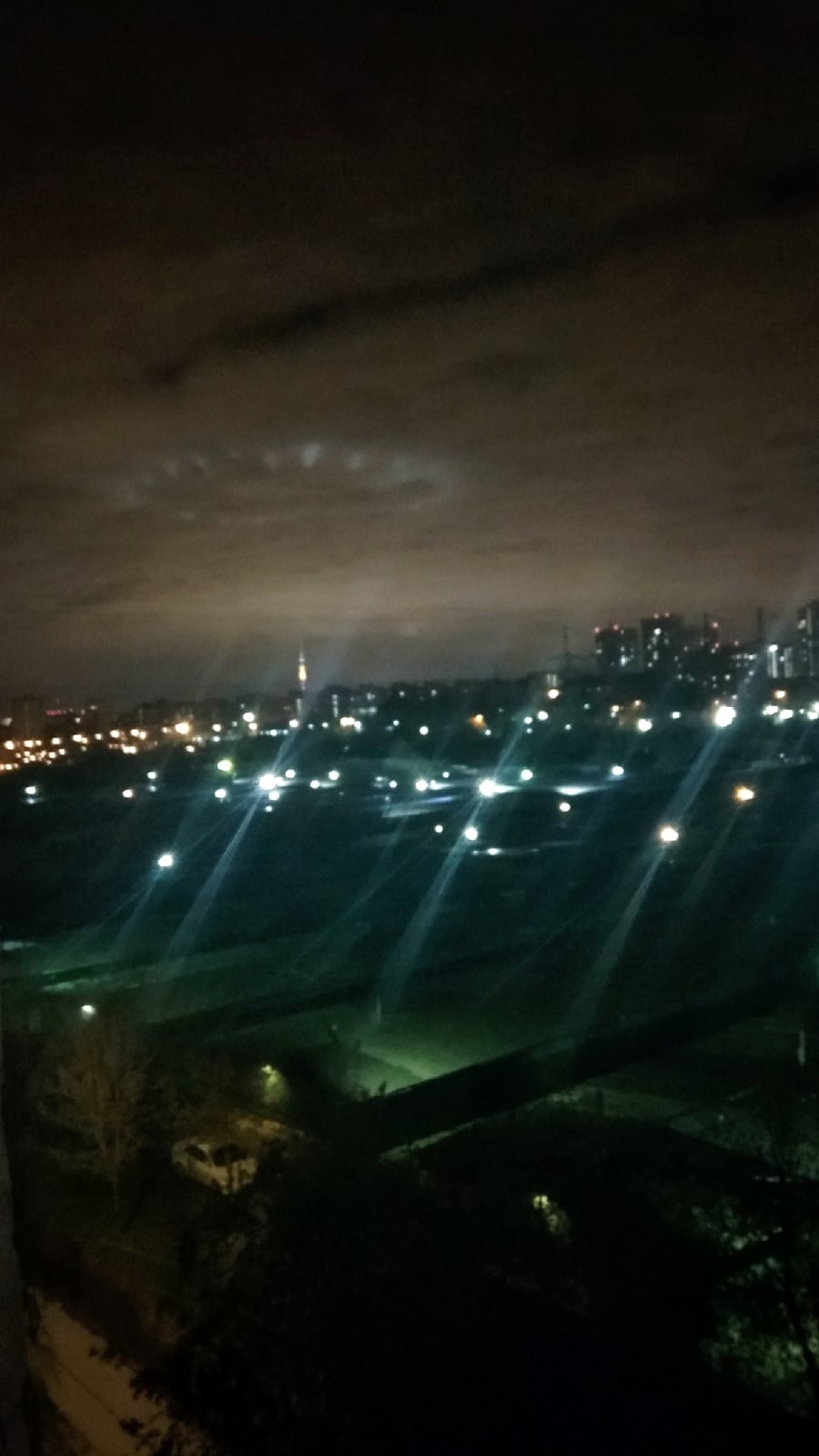 Снято ночью 3 мая. Москва. Подсветка над Останкинской башней.