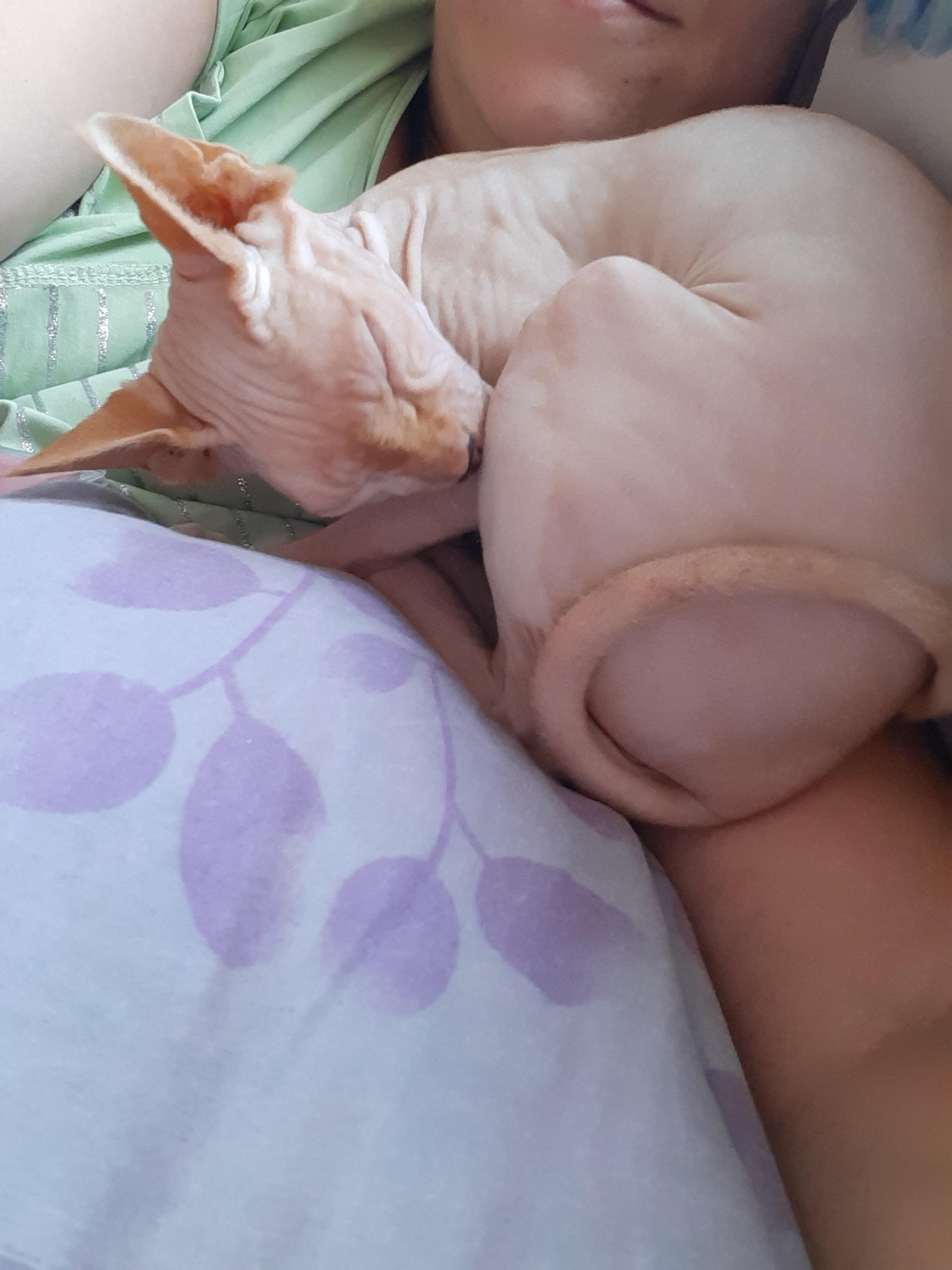 Приткнулась ко мне:))) мурчит как трактор. А еще она очень горячая:)) вообще непонятно, еще кто кого грел:)