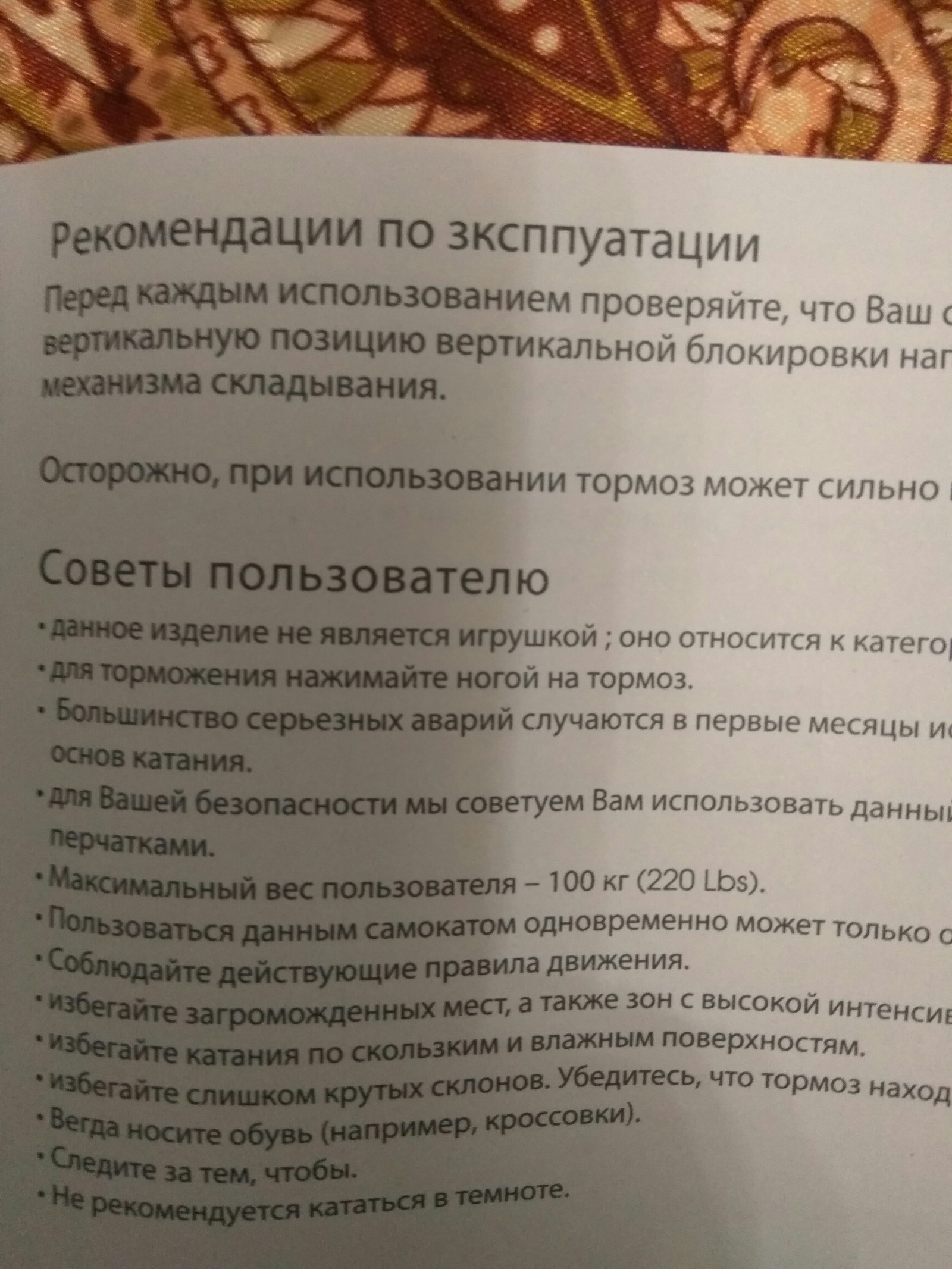 2 Kosh1808 7 лет назад Инструкция к самокату Предпоследний пункт радует. Как и 'зксппуатация') Инструкция Фото на тапок Безопасность
