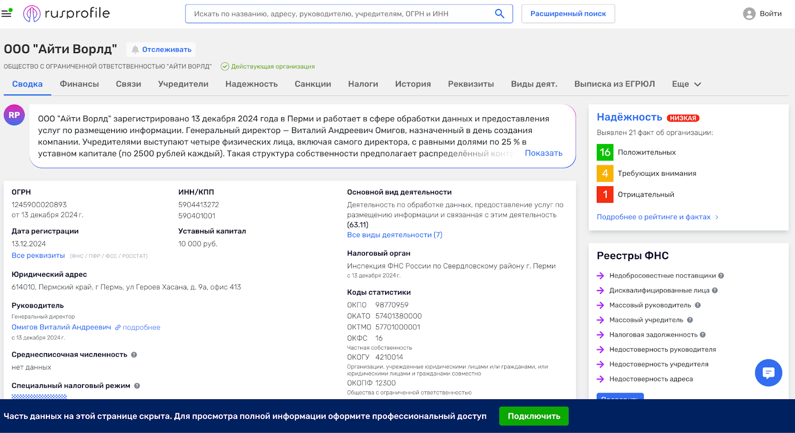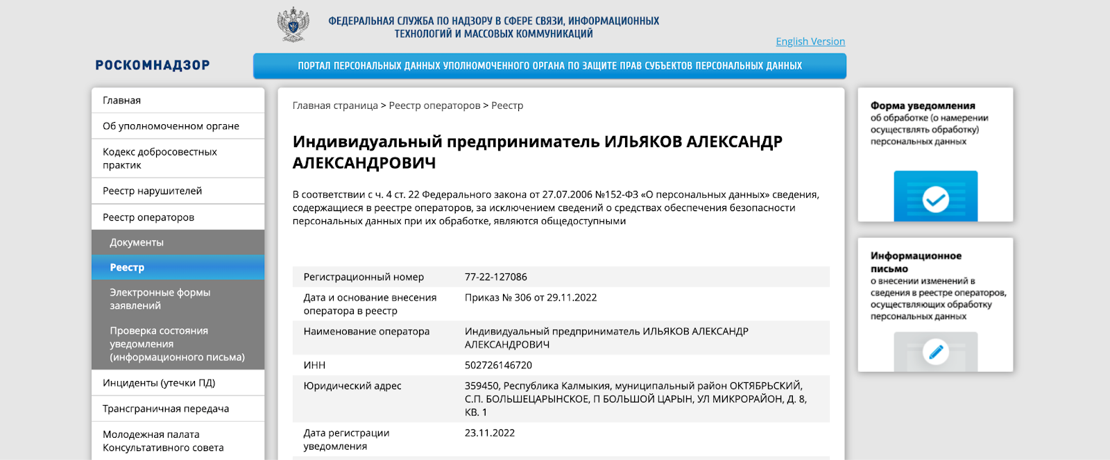 Владелец проекта — ИП Ильяков Александр Александрович (ИНН 502726146720), зарегистрированный в республике Калмыкия. Есть офис в Москве, куда можно обратиться за консультацией.