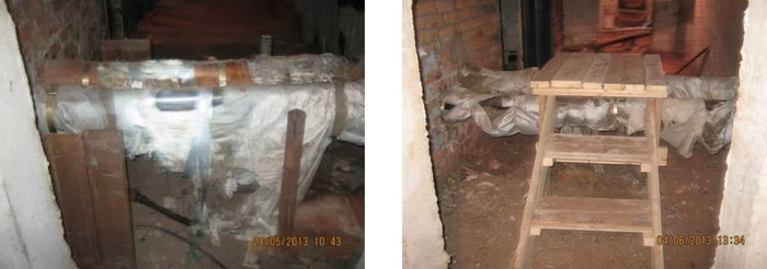 19. Отсутствуют переходные мостики через магистрали отопления. В результате перелезания через магистрали, на них рвется теплоизоляция, возможно опрокидывание. (На фото справа - устранение нарушения).