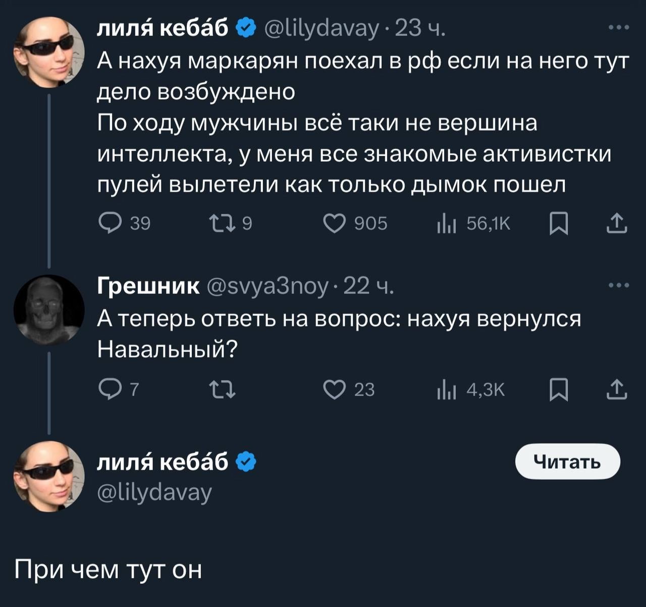3872 Odinist Интеллекты равны 4 месяца назад Политика Юмор Арсен Маркарян Алексей Навальный Уголовное дело Арест Интеллект Мат 613 41 3 1 Ещё 0