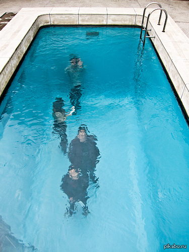 PapaTunde Интерактивная инсталляция. 10 лет назад 10-сантиметровый слой воды на стекле и стены цвета аквамарин создают иллюзию заполненного бассейна. Инсталляция Бассейн Интересное