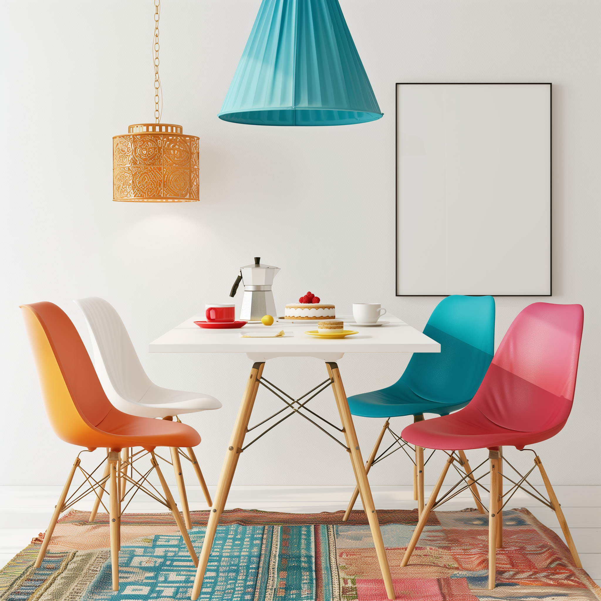 Конечно, я не буду вам советовать менять шкафы и кухню раз в два года, это сложно и дорого. Но стулья вокруг обеденного стола можно менять регулярно. Если у вас спокойный интерьер, а хочется добавить немного китча, то не стоит брать комплект одинаковых, соберите свою группу из моделей разных форм и цветов. Чтобы это решение смотрелось элегантно, нужен объединяющий элемент: цвет, обивка, форма ножек или общий стиль. Мне, например, нравится, как бархат этого стула оттеняет блеск экокожи на этой модели. Они могли бы составить нетривиальный дуэт.