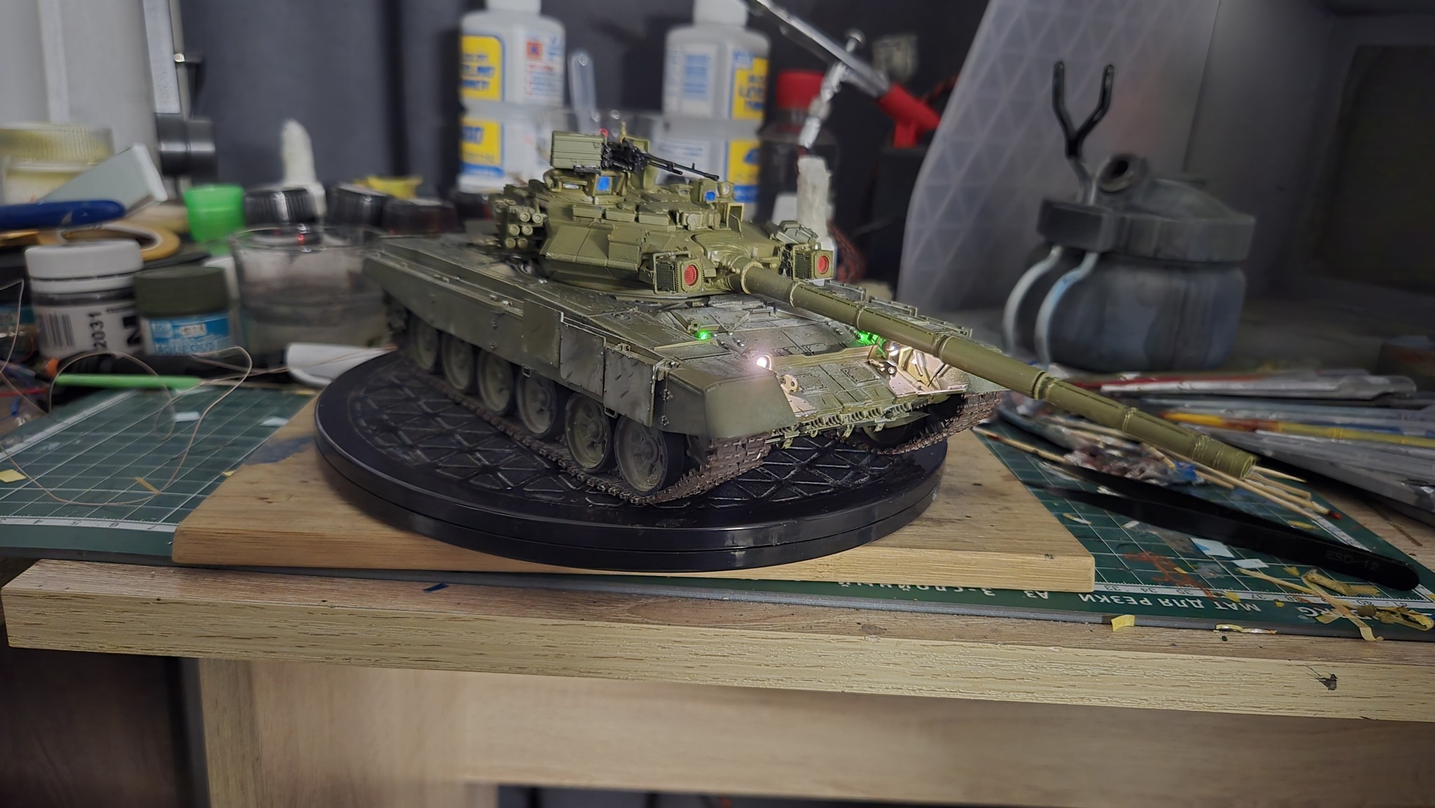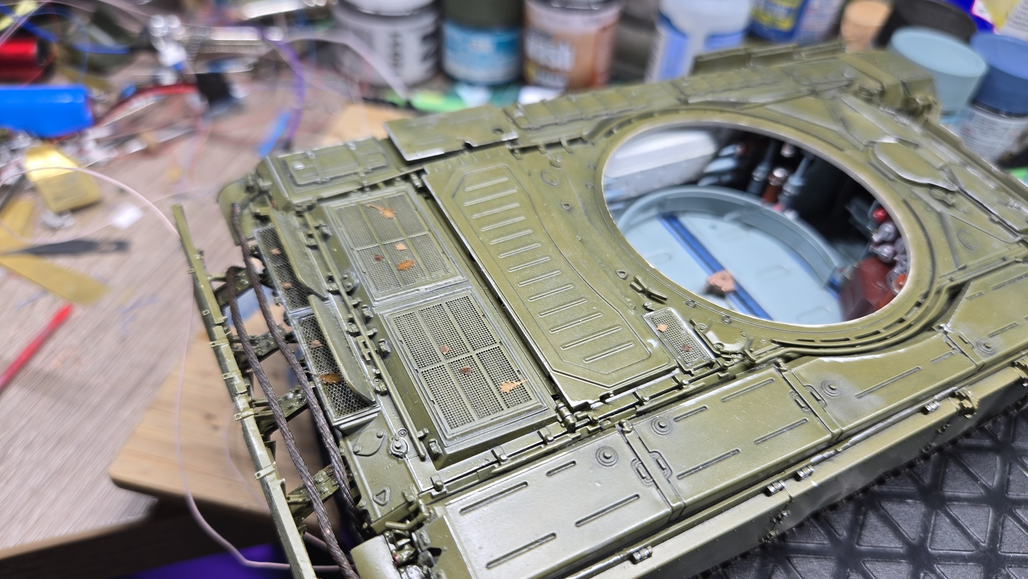 После всего этого дособирал башню, покрасил и нанёс всяких погодингов, сколов и пыли. Ещё на решетку радиатора чуть-чуть листвы накаидал.