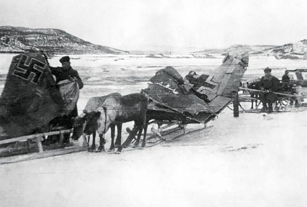 Интересная фотография. Считается, что Великая Отечественная Война была войной моторов, но в Заполярье, к примеру, большое значение имели оленьи упряжки, на которых доставляли к фронту боеприпасы, пополнение, а так же эвакуировали раненых. На данном фото арктический караван эвакуирует сбитый самолет люфтваффе. Так же, я публиковал фотографию американской "Катюши" РСЗО Т34 на базе танка Шерман. Кстати, прицеливание по вертикали, осуществлялось стволом, по горизонтали башней. А у меня все. Спасибо за внимание. До свидания!