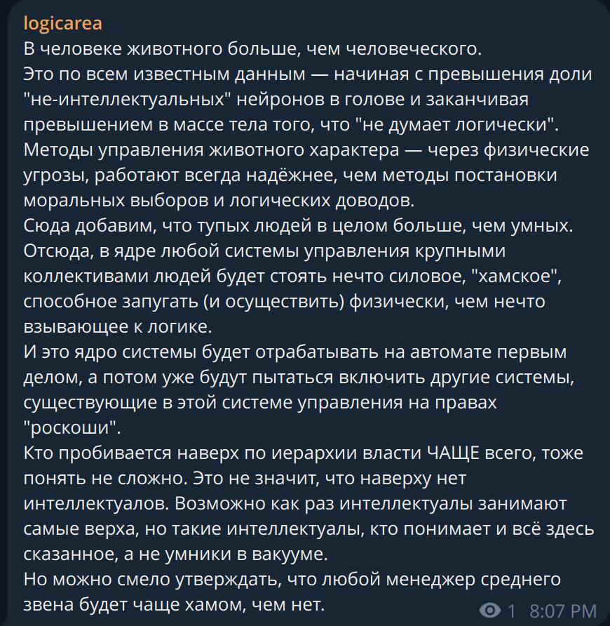 peloramka Интересная мысль, конечно 5 дней назад https://t.me/logicarea/794 Возможно это так. Менеджмент Логика Управление Telegram (ссылка) 4 Ещё 0