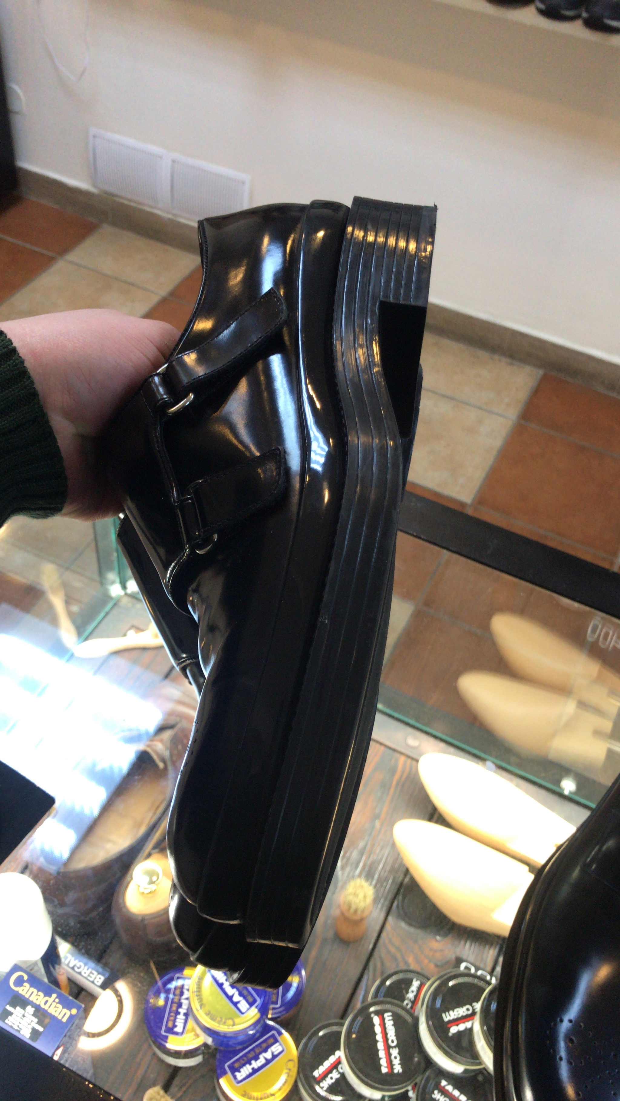 Недавно получили обращение от клиента, просьба уменьшить платформу подошвы на несколько фликов. Платформа действительно высокая, задача ясна.. Вот такие собственно туфли: