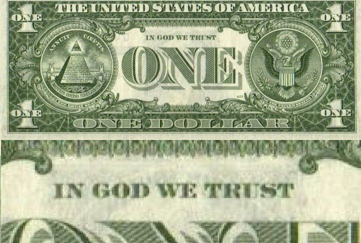 Таким образом ясно дается понять, к какому богу относится начертанный в центре банкнота девиз: "In God We Trust"