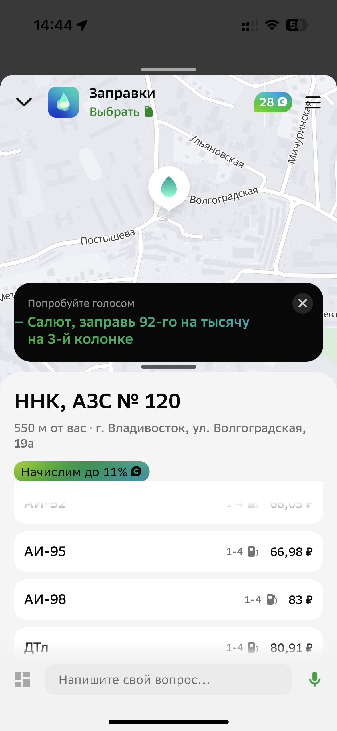 А еще ниже через Яндекс, стоимость через Яндекс такая же, как и при оплате на заправке наличкой или картой.