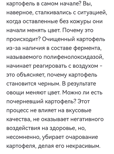 Когда картошка почернела после нарезки - она не стухла и не сгнила.
