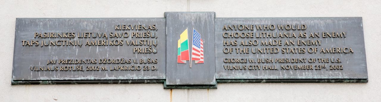На стене вильнюсской Ратуши находится памятная табличка с высказанными тогда чрезвычайно важными и вдохновляющими словами Дж. У. Буша: «Каждый, кто изберет Литву своим врагом, станет и врагом Соединенных Штатов Америки».