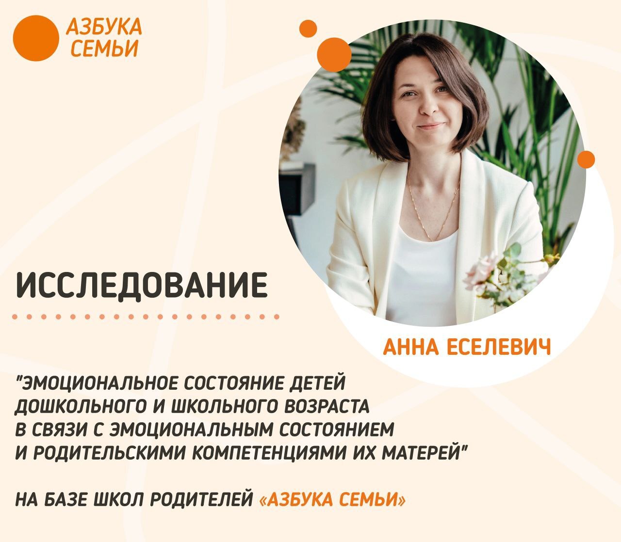 Спасибо молодому учёному Анне Еселевич и всем нашим уважаемым лидерам школ родителей "Азбука семьи" за огромный труд по поддержке семей с детьми и научному анализу его результатов🙏❤