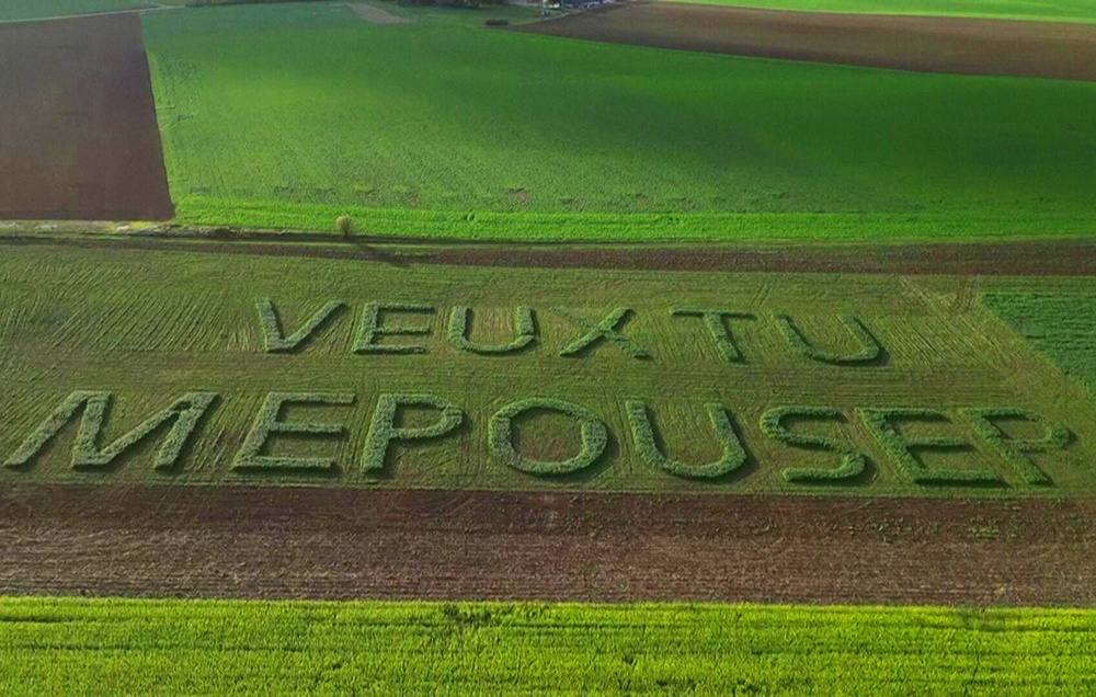С помощью трактора и косилки на поле площадью 2 га он написал «Выйдешь за меня?». Над созданием надписи длиной 180 метров фермер работал целый год.