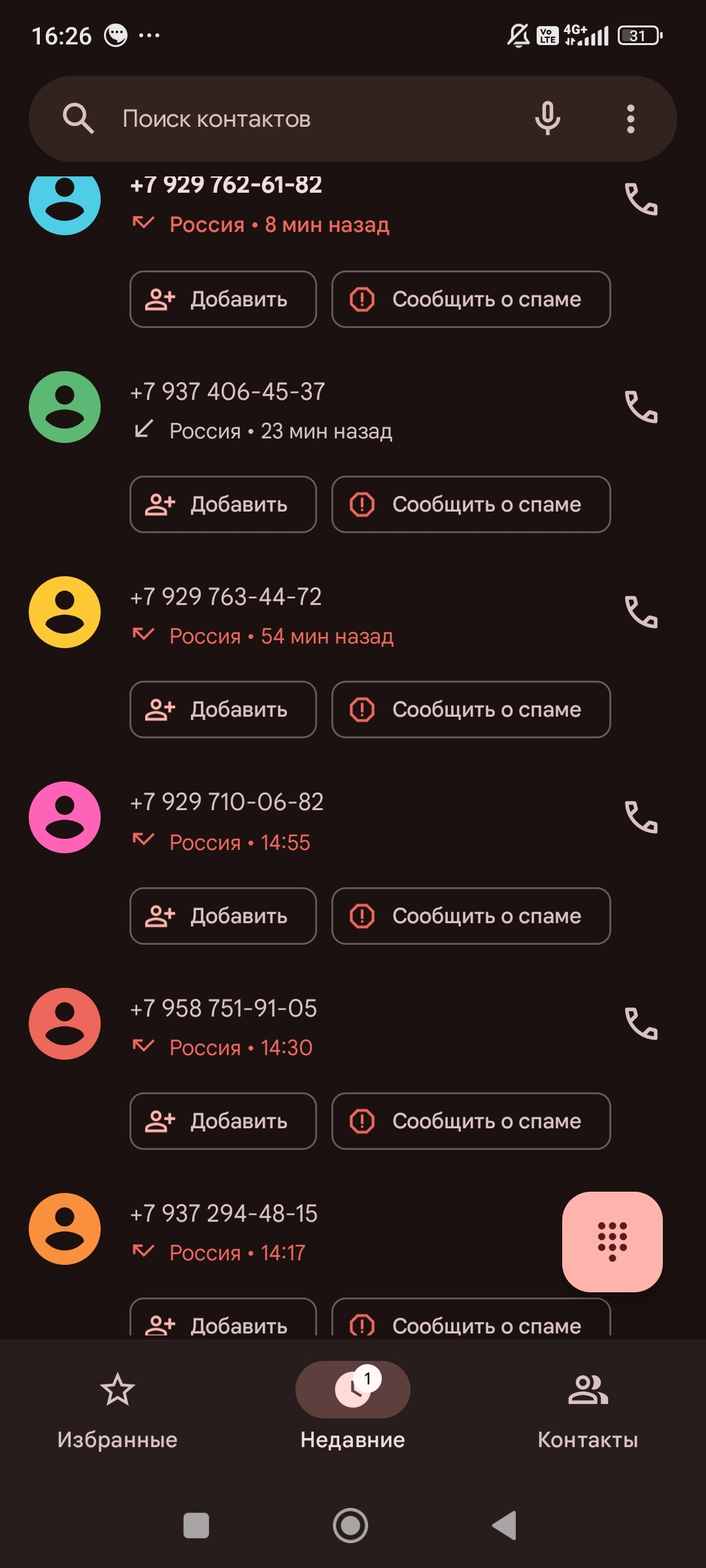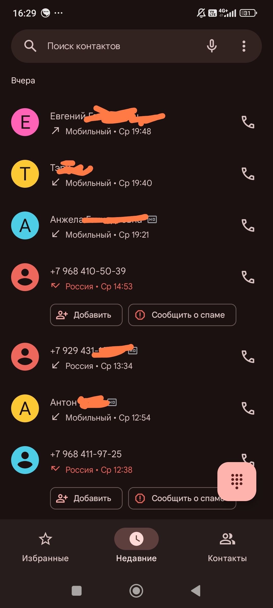 Номер с 929 в списке - полезный, это Росреестр звонил, поэтому цифры скрыл.