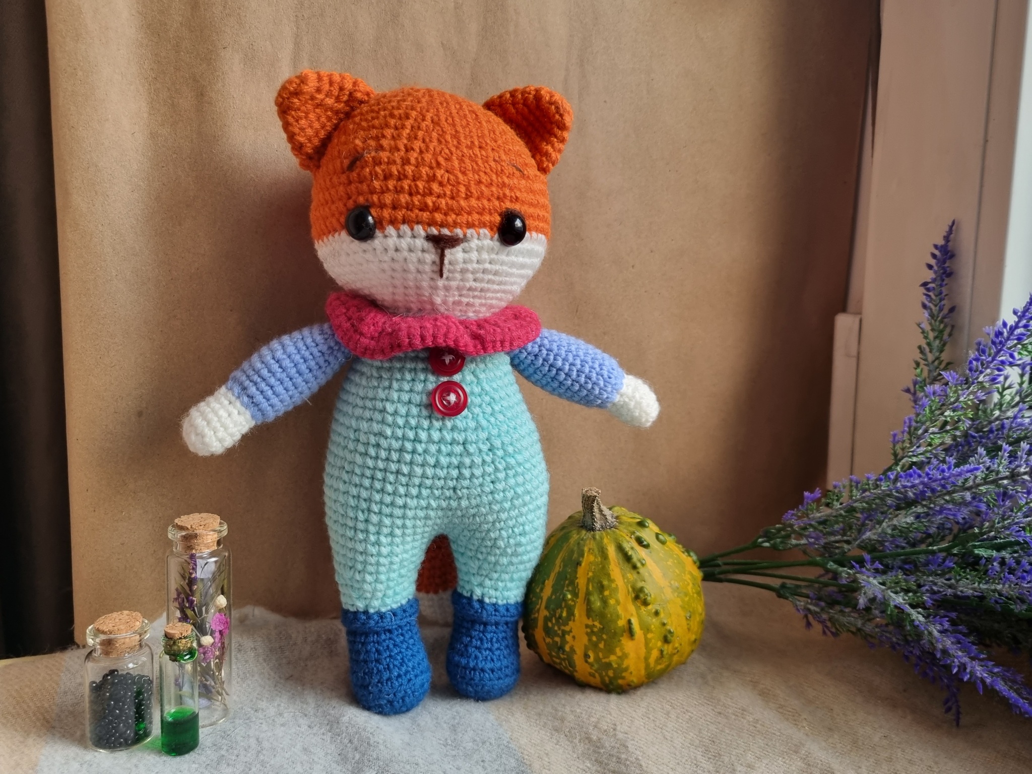 Лисенок Аийк, законченный 27 ноября (в мой день рождения), цвета одежды были вдохновлены артом с Pinterest. Он получился слишком детским. Кажется, что скоро я полностью переработаю дизайн игрушки