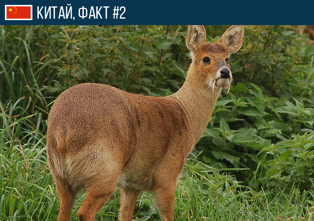 2. Почти все роды и виды оленей имеют рога. Единственным исключением является обитающий в Китае и Корее водяной олень, у которого рога не растут, зато есть выступающие клыки, что делает его похожим на представителя другого семейства — кабаргу. Во время гона водяные олени вступают в схватки и пытаются клыками порезать противнику шею
