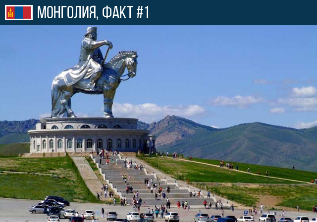 1. В Монголии находится самая высокая в мире статуя всадника на коне. Конная статуя расположена в 54 км к юго-востоку от центра Улан-Батора в местности Цонжин-Болдог. Всадник, конечно - Чингисхан.