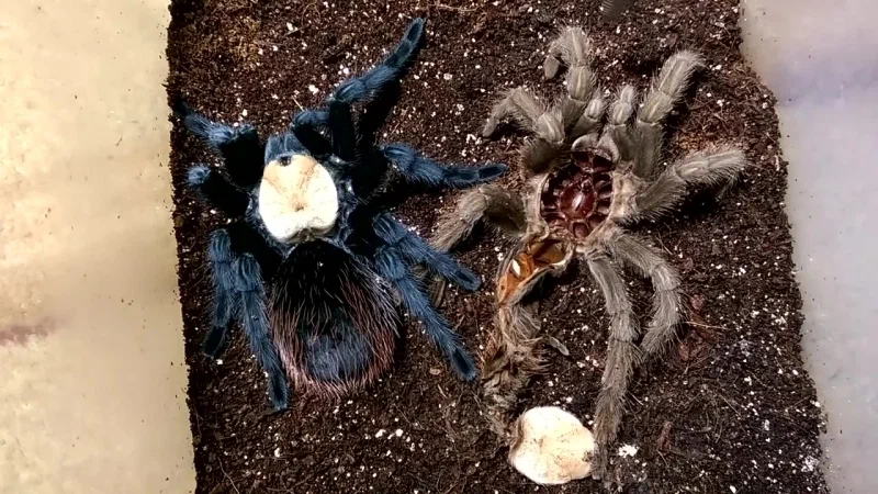 4. Тело всех паков покрыто хитиновым панцирем или экзоскелетом. По мере роста паука, экзоскелет сбрасывается. То есть все птицееды линяют. Чем взрослее паук, тем реже линька.