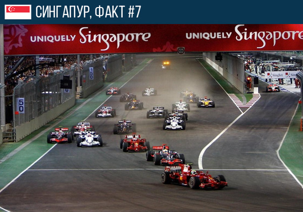 7. Единственная в мире ночная гонка Формулы-1 – “Formula 1 Singtel Singapore Grand Prix”, проводится в Сингапуре.