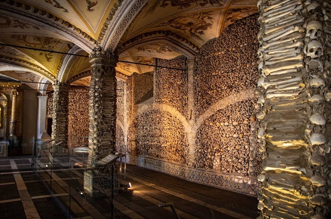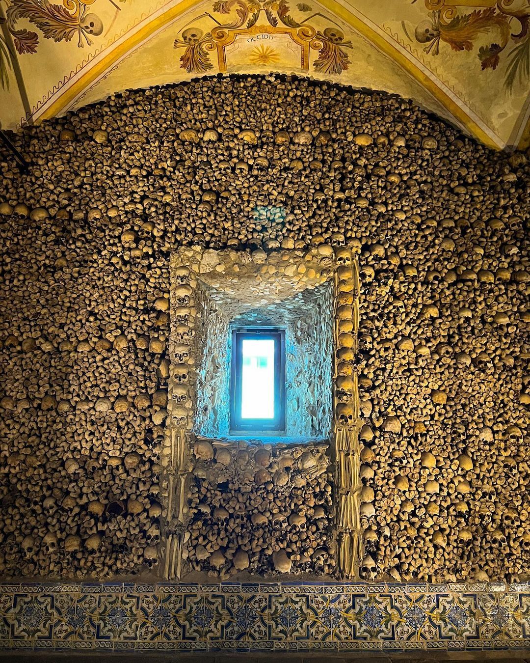 6. В городе Эвора есть часовня XVI века построенная из костей приблизительно 5000 скелетов монахов. Выглядит жутко